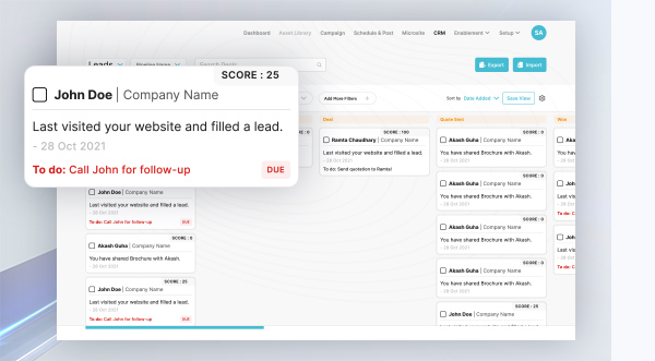 This feature allows sales teams and partners to move leads from one stage to another based on their activity. Lead stages are an important part of the sales funnel and pipeline that helps you understand and distinguish your leads’ sales journey. For example, New lead> Engaged> Quote Sent> Won> Requirement> Dropped are some of the stages as per the cycle growth. It helps: